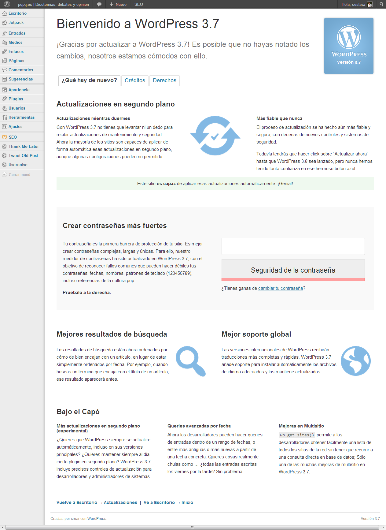 WordPress tiene 10 años y acaba de lanzar la versión 3.6 3.7 3.8. Como cualquier otro software las nuevas versiones van introduciendo mejoras de usabilidad y diseño en su interfaz.