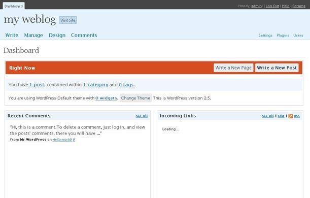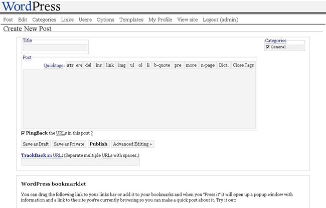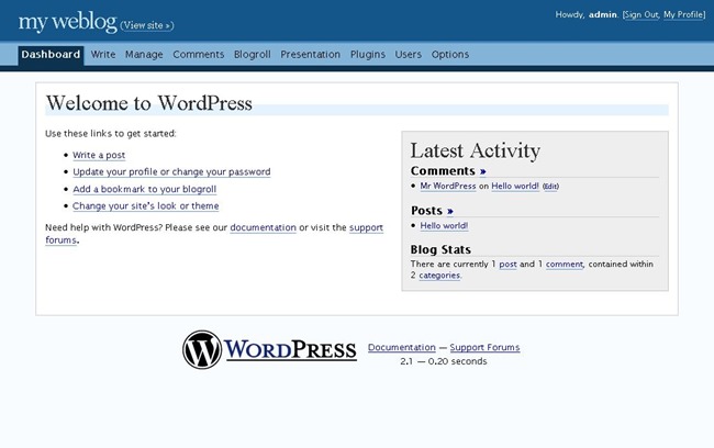 WordPress 2.0 – WordPress 3.0 (2005 – 2009)