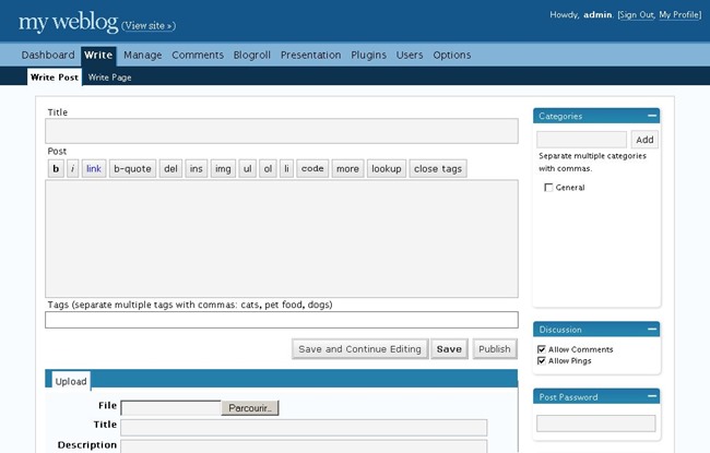 Se podía asignar más de una categoría a un post y configurar enlaces permanentes amigables. Se destacó la función de moderar los comentarios.